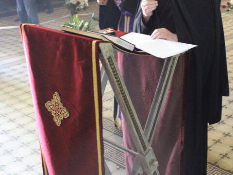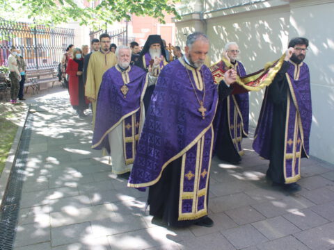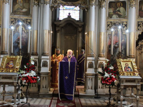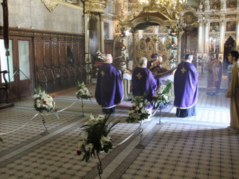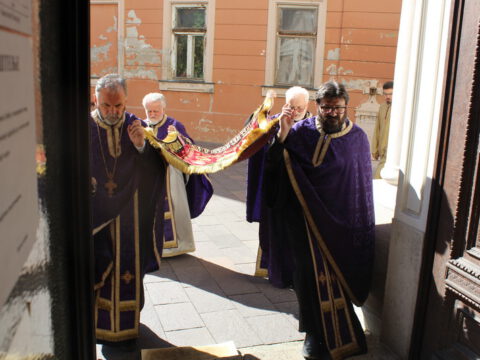На Велики петак, 4/17. априла 2020. године, у Саборном храму Светог великомученика Георгија у Новом Саду, са почетком у 12 часова служено је свечано вечерње богослужење са изношењем плаштанице.