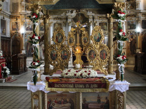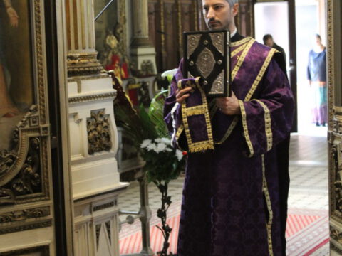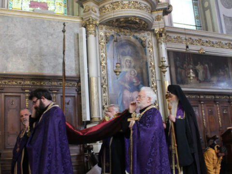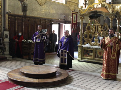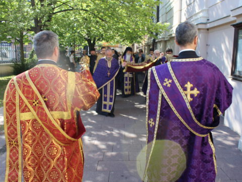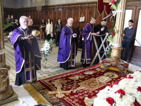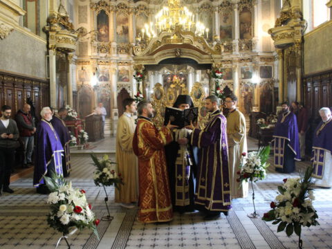 На Велики петак, 4/17. априла 2020. године, у Саборном храму Светог великомученика Георгија у Новом Саду, са почетком у 12 часова служено је свечано вечерње богослужење са изношењем плаштанице.
