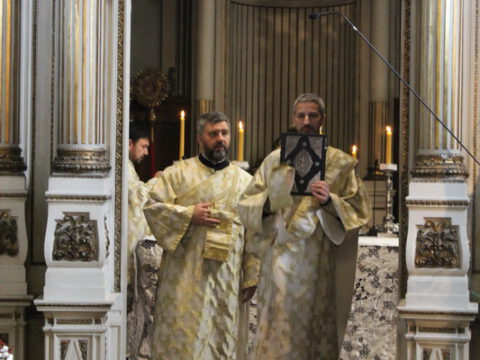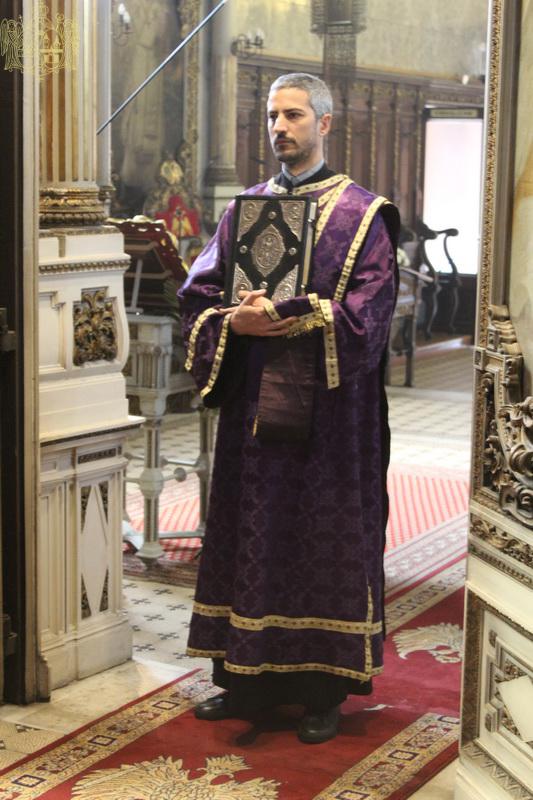 У складу са богослужбеним типиком Велике суботе, служена је света Литургија Светога Василија Великог, која почиње вечерњим богослужењем карактеристичним по појању васкрсних стихира првога гласа, у којима већ прослављамо Васкрсење Господа нашега Исуса Христа. У наставку богослужења, после входа, прочитани су паримеји и Апостол. За време појања великог прокимена по прочитаном Апостолу, свештенослужитељи Саборног храма скинули су тамне одежде и обукли свечане светле одежде, оденувши и Часну трпезу у бело, чиме је већ данас пројављена радост Христовог Васкрсења и победа над смрћу. Исту радост благовести и данашње јеванђелско зачало из Јеванђеља по Матеју, у којем је описан догађај јављања анђела Господњег на месту Христовог гроба и сусрет Васкрслог Господа Исуса Христа са женама мироносицама.