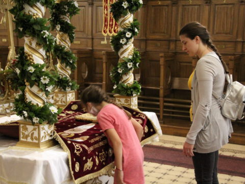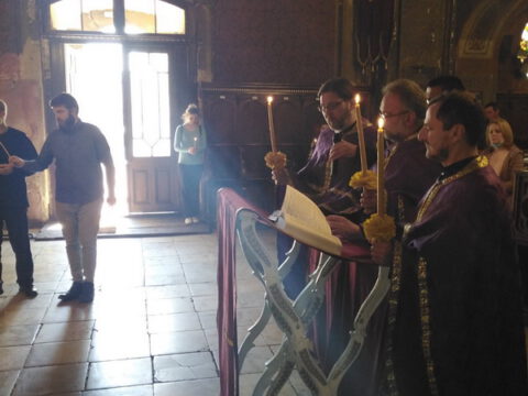 После трократног опхода око храма, плаштаница, која представља Гроб Христов, унесена је у Световазнесењски храм, који нас позива и надаље на смирење и трпљење.