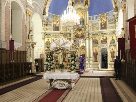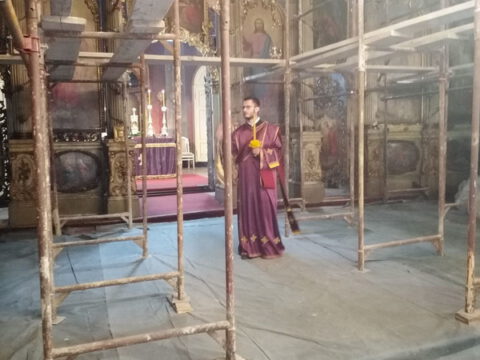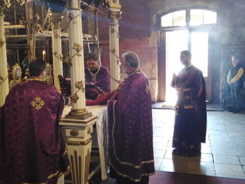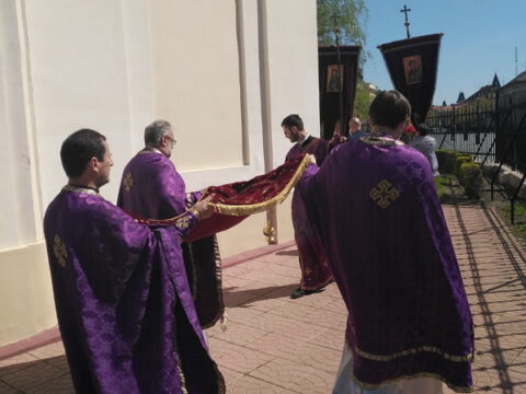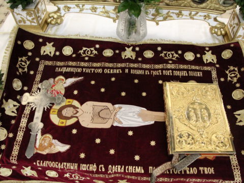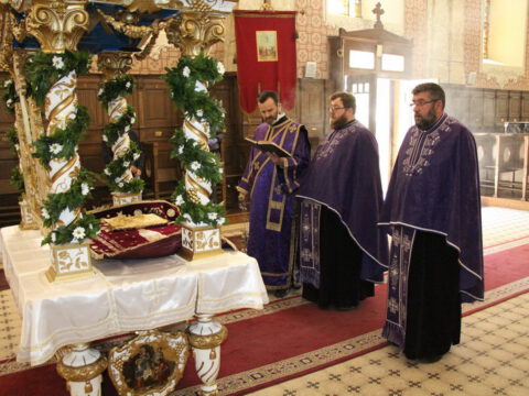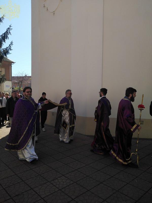 После трократног опхода око храма, плаштаница, која представља Гроб Христов, унесена је у Световазнесењски храм, који нас позива и надаље на смирење и трпљење.