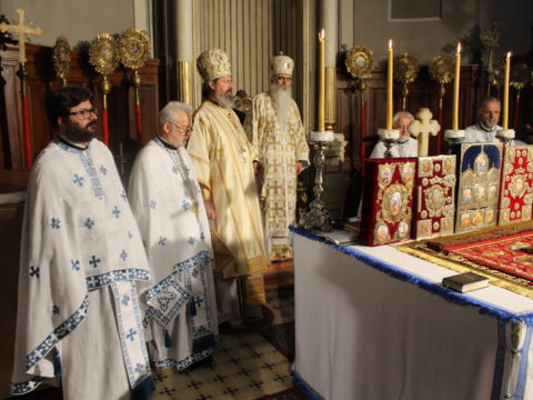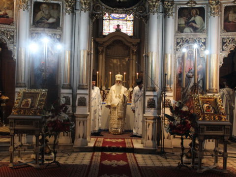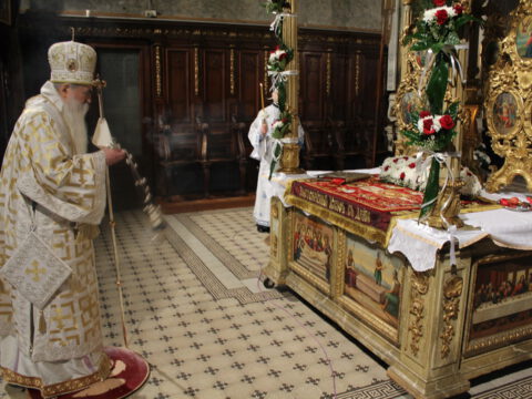 На Празник Васкрсења Господа нашег Исуса Христа, у недељу, 6/19. априла 2020. године, Његово Преосвештенство Епископ новосадски и бачки господин Иринеј служио је Пасхално јутрење и началствовао на светој архијерејској Литургији у Саборном храму Светог великомученика Георгија у Новом Саду. Владици Иринеју су саслуживали: Његово Преосвештенство Епископ мохачки господин Исихије, свештеници Саборног храма и новосадски ђакони.