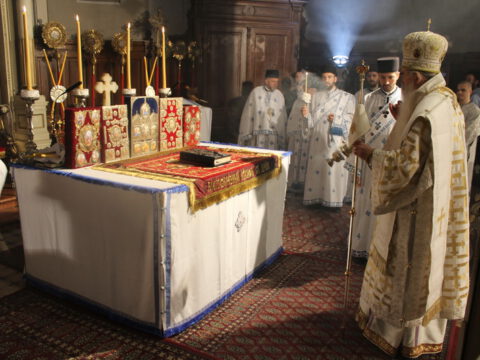 Васкршњу посланицу Архиепископа пећког, Митрополита београдско-карловачког и Патријарха српског господина Иринеја и свих архијереја Српске Православне Цркве, упућену свештенству, монаштву и свима синовима и кћерима наше свете Цркве, прочитао је протопрезвитер-ставрофор Миливој Mијатов, архијерејски намесник новосадски први и сабрат Светогеоргијевског храма. Васкршње слово светог Јована Златоуста прочитао је Епископ новосадски и бачки господин Иринеј.