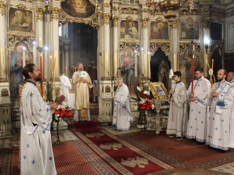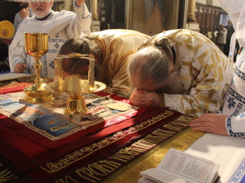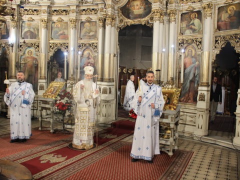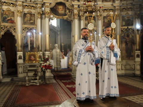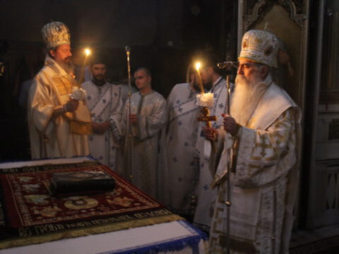 На Празник Васкрсења Господа нашег Исуса Христа, у недељу, 6/19. априла 2020. године, Његово Преосвештенство Епископ новосадски и бачки господин Иринеј служио је Пасхално јутрење и началствовао на светој архијерејској Литургији у Саборном храму Светог великомученика Георгија у Новом Саду. Владици Иринеју су саслуживали: Његово Преосвештенство Епископ мохачки господин Исихије, свештеници Саборног храма и новосадски ђакони.