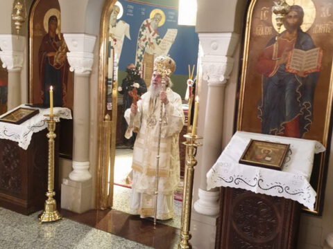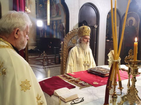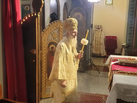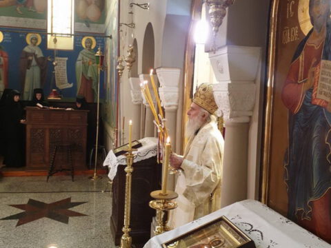 Његова Светост Патријарх српски г. Иринеј служио је 26. априла 2020. године, на Томину недељу, свету архијерејску Литургију у манастиру Ваведења Пресвете Богородице у Београду.