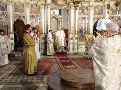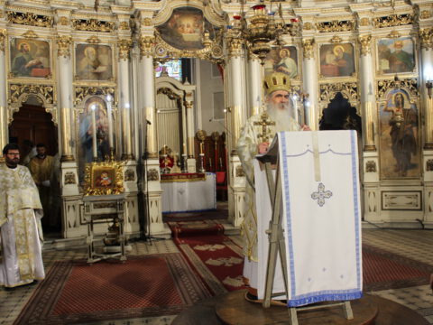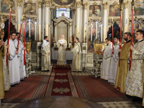 У Недељу мироносица, 20. априла/3. маја 2020. године, Његово Преосвештенство Епископ новосадски и бачки господин Иринеј началствовао је на светој архијерејској Литургији у Саборном храму у Новом Саду. Преосвештеном владици Иринеју су саслуживали: Његово Преосвештенство Епископ мохачки господин Исихије, свештеници Саборног храма и новосадски ђакони.