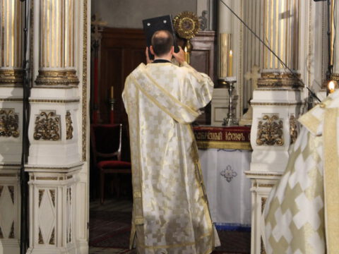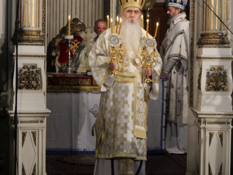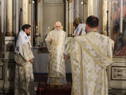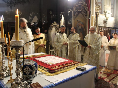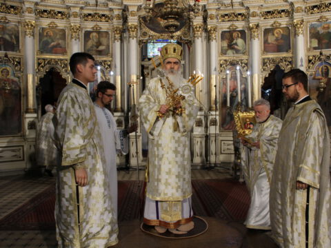 У Недељу мироносица, 20. априла/3. маја 2020. године, Његово Преосвештенство Епископ новосадски и бачки господин Иринеј началствовао је на светој архијерејској Литургији у Саборном храму у Новом Саду. Преосвештеном владици Иринеју су саслуживали: Његово Преосвештенство Епископ мохачки господин Исихије, свештеници Саборног храма и новосадски ђакони.