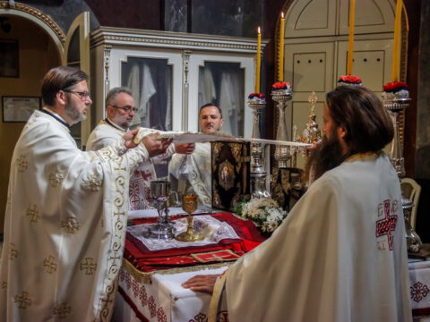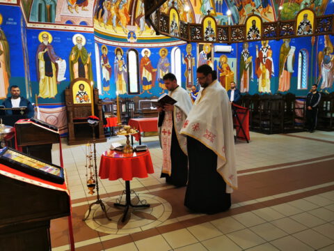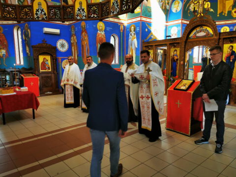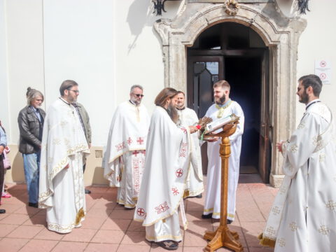 Нови Сад – У среду треће недеље по празнику Пасхе, 23. априла/6. маја 2020. године, житељи Новог Сада свечано су прославили престони празник Саборног храма Светога великомученика, победоносца и чудотворца Георгија. Прослављање празника отпочело је свечаним празничним бденијем на којем је началствовао протојереј-ставрофор Миливој Мијатов, уз саслужење новосадских свештеника.