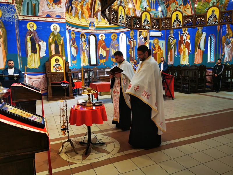 На дан празника на светој архијерејској Литургији началствовао је Његово Преосвештенство Епископ новосадски и бачки господин Иринеј, уз саслужење Његовог Преосвештенства Епископа мохачког господина Исихија, новосадских свештеника и ђакона.