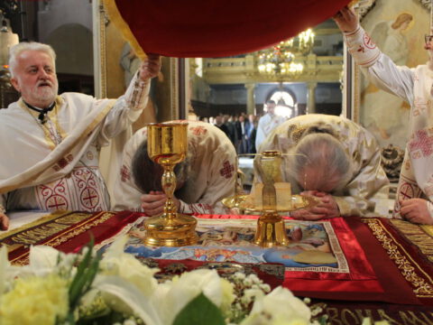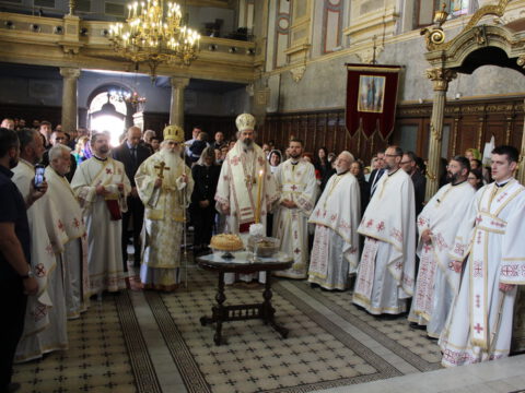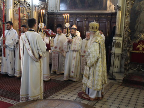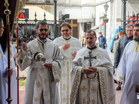 Нови Сад – У среду треће недеље по празнику Пасхе, 23. априла/6. маја 2020. године, житељи Новог Сада свечано су прославили престони празник Саборног храма Светога великомученика, победоносца и чудотворца Георгија. Прослављање празника отпочело је свечаним празничним бденијем на којем је началствовао протојереј-ставрофор Миливој Мијатов, уз саслужење новосадских свештеника.