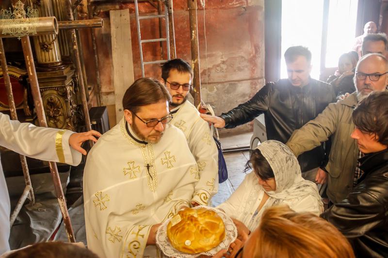 После заамвоне молитве, владика Иринеј је благословио славске дарове, које је ове године са љубављу, Господу у славу, а у част светог великомученика Георгија, принео кум храмовне славе, господин Саша Михић са породицом. Светој Литургији су присуствовали господин Никола Перваз, председник Црквене општине у Новом Саду, и господин др Радивоје Стојковић, директор Гимназије Јован Јовановић Змај.