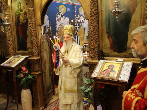 Његова Светост Патријарх српски г. Иринеј началствоваo je 6. маја 2020. године, на Ђурђевдан, светом архијерејском Литургијом у цркви Светог Георгија на Бановом брду.