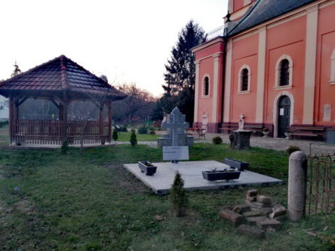 Давне 1941. године у порту храма Светог архангела Михаила пренет је Крст православних, висок пет хвати, и саграђен од црвеног мермера. Он памти недаће српског народа кроз историју. Други Крст који затичемо у порти је ту од 1960. године, а у литератури се спомиње као Српски крст. Сеновита башта црквене порте чува и Стару српску школу, која је враћена у поступку реституције, а након планиране обнове ће поново бити место окупљања православних Срба у Сенти.