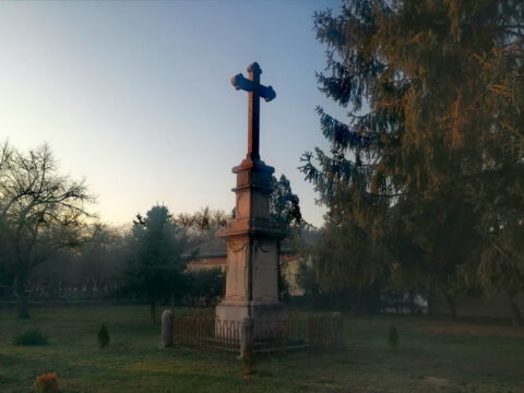 Давне 1941. године у порту храма Светог архангела Михаила пренет је Крст православних, висок пет хвати, и саграђен од црвеног мермера. Он памти недаће српског народа кроз историју. Други Крст који затичемо у порти је ту од 1960. године, а у литератури се спомиње као Српски крст. Сеновита башта црквене порте чува и Стару српску школу, која је враћена у поступку реституције, а након планиране обнове ће поново бити место окупљања православних Срба у Сенти.