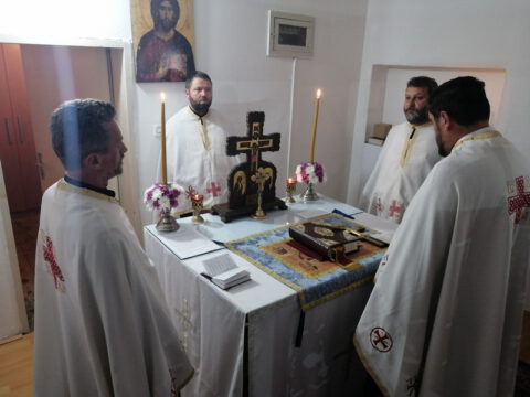 Вечерње богослужење, на којем је извршен чин благосиљања славског жита и колача, служио је протојереј Бранислав Мркић, архијерејски намесник новосадски други, уз саслужење свештенства и ђакона Епархије бачке. Беседећи, отац Бранислав је нагласио да само Црква може да пружи оно што је човеку најпотребније, а то је живот вечни.
