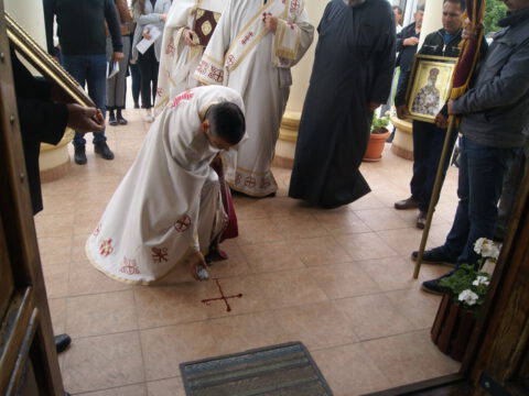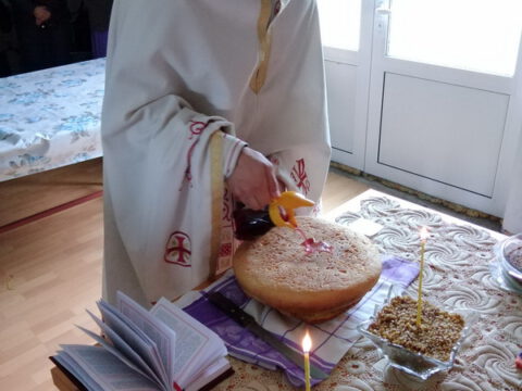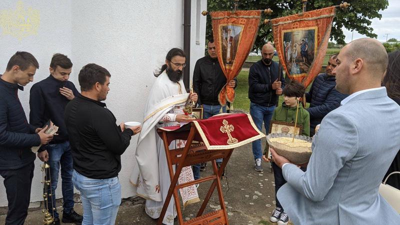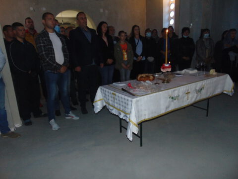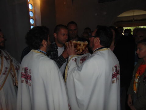 По заамвоној молитви извршен је трократни опход око храма. Освећен је и преломљен славски колач и благосиљано славско вино и кољиво, које је припремио храмовни кум, г. Јован Росић са породицом. Изразивши захвалност овогодишњем куму, презвитер Синиша Тривић је предао залог славског колача г. Арсенију Старовићу, као благослов за кумство у следећој години Господњој.