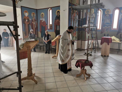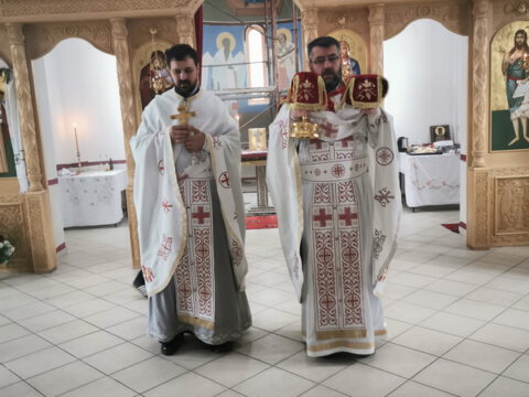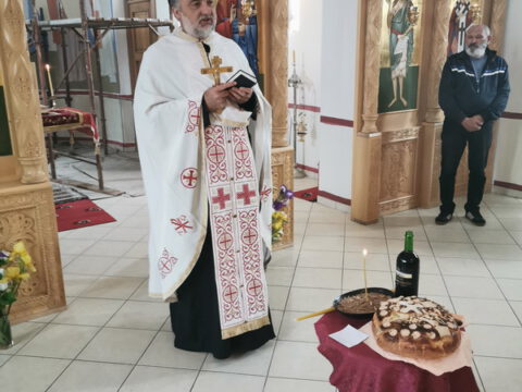 На дан празновања светитеља Василија Острошког, свету Литургију служио је презвитер Стефан Тубић, надлежни парох. После Литургије извршен је трократни опход око храма и чин благосиљања славког колача и кољива.
