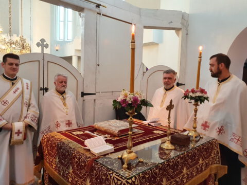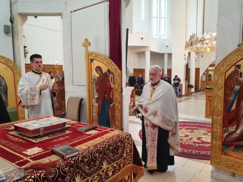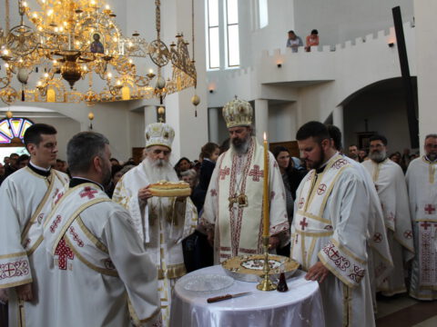 Његово Преосвештенство Епископ бачки г. Иринеј служио је свету архијерејску Литургију у храму Светих Ћирила и Методија на Телепу, 11/24. маја 2020. године. Владици су саслуживали: Његово Преосвештенство Епископ мохачки г. Исихије, свештеници и ђакони Епархије бачке.