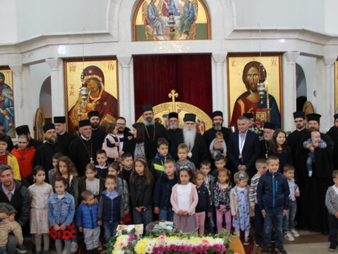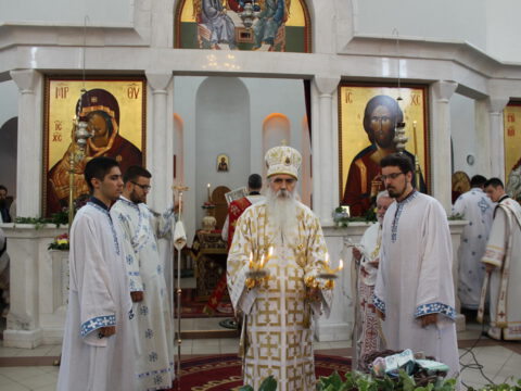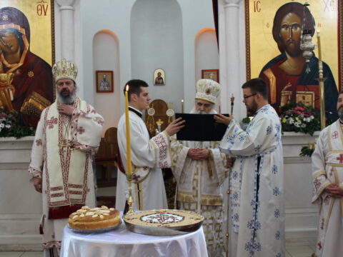 Епископ мохачки г. Исихије је рукоположио ипођакона Јована Вачика у чин ђакона. После благосиљања славког колача и кољива, у име свештенослужитељâ и вернога народа храма на Телепу, протонамесник Велимир Врућинић је заблагодарио владици Иринеју на началствовању евхаристијским сабрањем. Као што сте данас то учинили у храму који је изграђен и који служи Вашим благословом, тако већ 30 година – као Архијереј Цркве Божје – сведочите Јеванђеље Христово. Ви Владико, чврсто и непроменљиво проповедате и живите једну веру и Једнога Господа нашег Исуса Христа. Са жељом да још дуго година служите и сведочите, приносим Вашој љубави дар – икону великог архијереја, која је насликана у нашој парохији. Владико, на многаја љета, навео је настојатељ храма на Телепу. Епископ бачки је честитао славу братству и парохијанима храма. Нека Бог дâ да у здрављу и сваком добру прослављамо и идуће године, без страха од било каквих вируса осим вируса злобе, демонске и људске, и да се трудимо и сами да из нас никада не извире неко осећање небратољубиво и небогољубиво, казао је владика Иринеј.