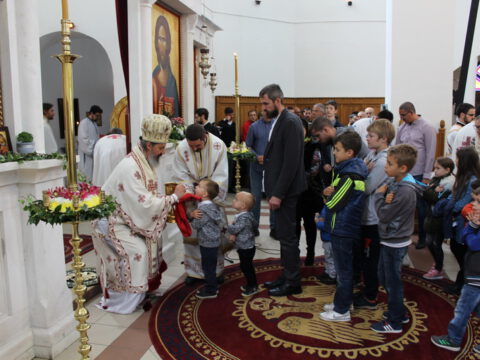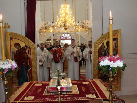 Епископ мохачки г. Исихије је рукоположио ипођакона Јована Вачика у чин ђакона. После благосиљања славког колача и кољива, у име свештенослужитељâ и вернога народа храма на Телепу, протонамесник Велимир Врућинић је заблагодарио владици Иринеју на началствовању евхаристијским сабрањем. Као што сте данас то учинили у храму који је изграђен и који служи Вашим благословом, тако већ 30 година – као Архијереј Цркве Божје – сведочите Јеванђеље Христово. Ви Владико, чврсто и непроменљиво проповедате и живите једну веру и Једнога Господа нашег Исуса Христа. Са жељом да још дуго година служите и сведочите, приносим Вашој љубави дар – икону великог архијереја, која је насликана у нашој парохији. Владико, на многаја љета, навео је настојатељ храма на Телепу. Епископ бачки је честитао славу братству и парохијанима храма. Нека Бог дâ да у здрављу и сваком добру прослављамо и идуће године, без страха од било каквих вируса осим вируса злобе, демонске и људске, и да се трудимо и сами да из нас никада не извире неко осећање небратољубиво и небогољубиво, казао је владика Иринеј.