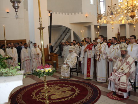 Његово Преосвештенство Епископ бачки г. Иринеј служио је свету архијерејску Литургију у храму Светих Ћирила и Методија на Телепу, 11/24. маја 2020. године. Владици су саслуживали: Његово Преосвештенство Епископ мохачки г. Исихије, свештеници и ђакони Епархије бачке.