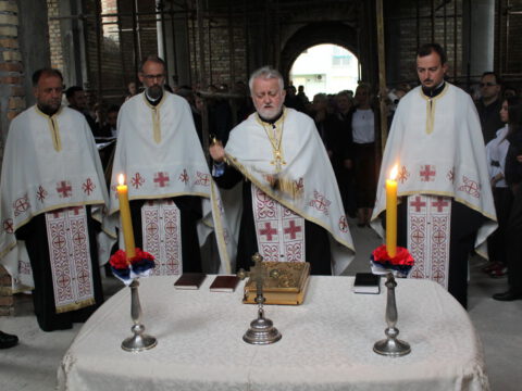 Протопрезвитер-ставрофор Стојан Билић, парох на Грбавици, заблагодарио је свештеницима који су узели учешће у молитвеном сабрању и вернима који су дошли да увеличају празнично славље. Прота Стојан је даривао куму, господину Радићу, дивну икону Светог цара Константина и царице Јелене.