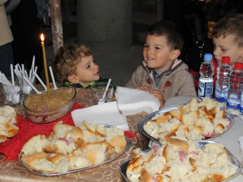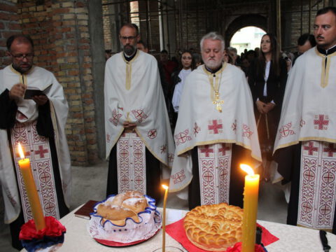 Прота Миливој је благословио славско жито и славски колач, дарове овогодишњег кума – г. Радована Радића са породицом. Беседећи, отац Миливој је казао да су, захваљујући честитости цара Константина, наши преци добили право да могу слободно да исповедају своју веру. Нека вам је свима срећно и благословено данашње сабрање и нека Бог дâ да молитвама светих равноапостолних царева Константина и Јелене овај храм у што скорије време буде уређен, навео је архијерејски намесник новосадски први, честитајући свима празник и храмовну славу житељима новосадског насеља Грбавице.