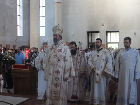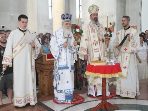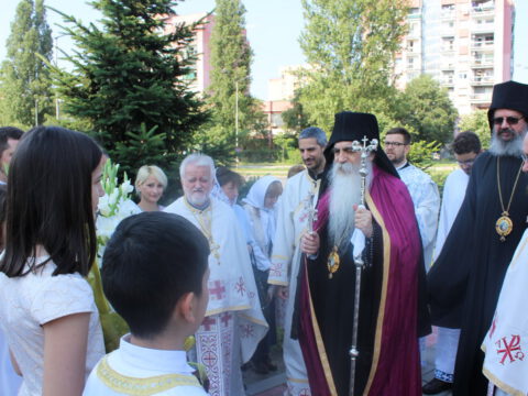 Нови Сад – У недељу трећу по Педесетници, 15/28. јуна 2020. године, на празник Видовдан, Његово Преосвештенство Епископ новосадски и бачки госпoдин Иринеј началствовао је на светој Литургији у Светосавском храму у Новом Саду, а саслуживали су Епископ мохачки господин Исихије, новосадски свештеници и ђакони.
