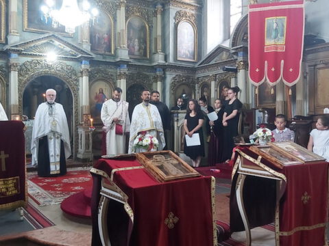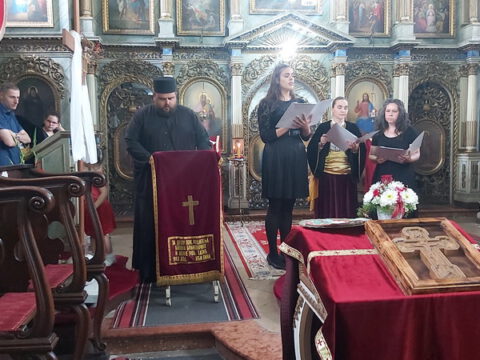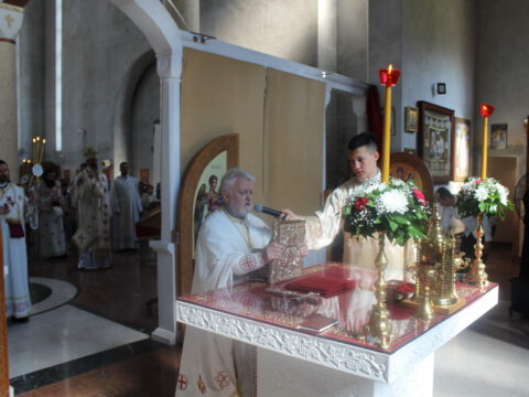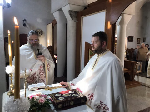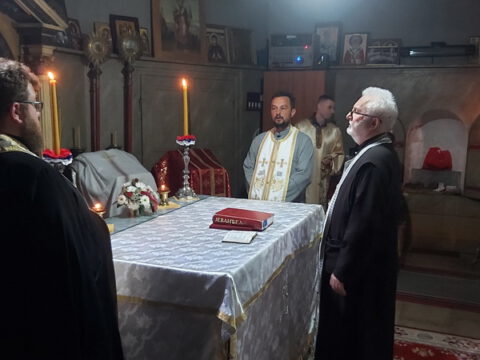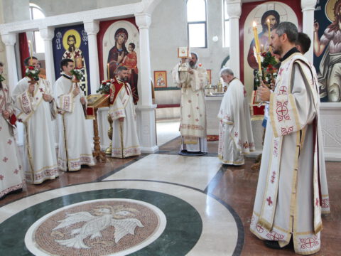 После заамвоне молитве, Преосвећени епископи Иринеј и Исихије служили су парастос свим нашим војводама и војницима који су свој живот положили за веру и отаџбину, од Косовског боја до данас.