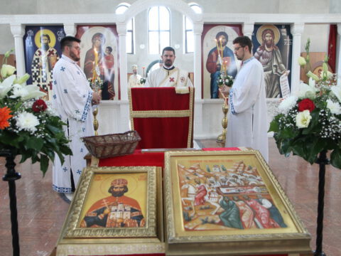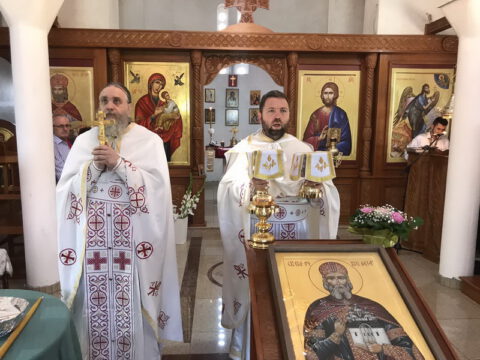 На дан празновања спомена на Светога кнеза Лазара свету Литургију је служио презвитер Зоран Регодић, надлежни парох, уз саслужење јеромонаха Пахомија (Швачка). После прочитаног јеванђелског зачала, надлежни парох је честитао славу сабраном народу и одржао надахнуту проповед о значају Косовског Завета за род наш. После заамвоне молитве извршен је литијски опход око светог храма, а потом је одржан парастос свим пострадалим војсковођама и војницима за веру и отаџбину од Косовске битке до данашњег дана.