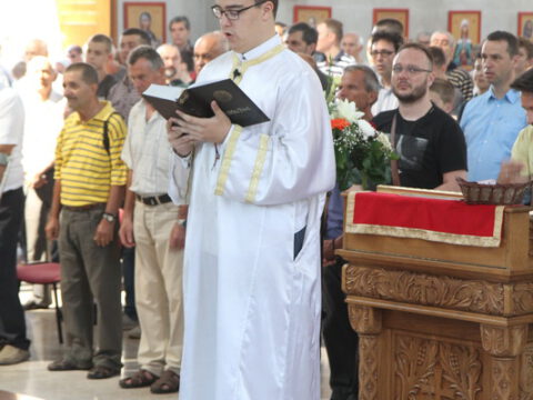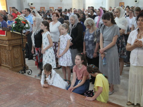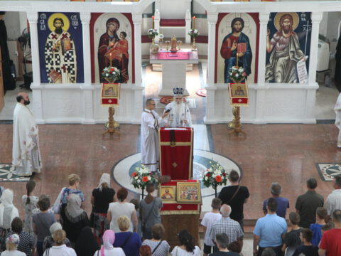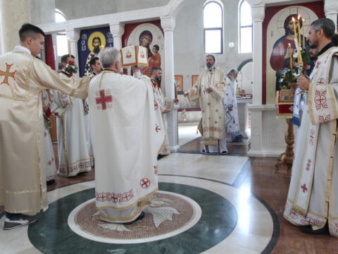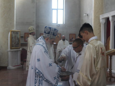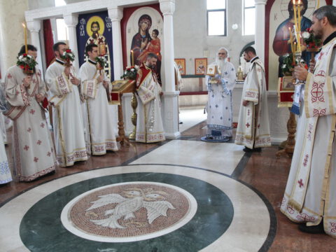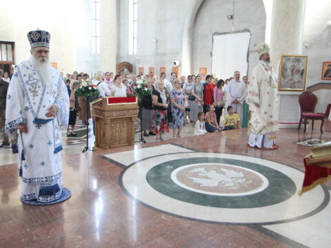 Нови Сад – У недељу трећу по Педесетници, 15/28. јуна 2020. године, на празник Видовдан, Његово Преосвештенство Епископ новосадски и бачки госпoдин Иринеј началствовао је на светој Литургији у Светосавском храму у Новом Саду, а саслуживали су Епископ мохачки господин Исихије, новосадски свештеници и ђакони.
