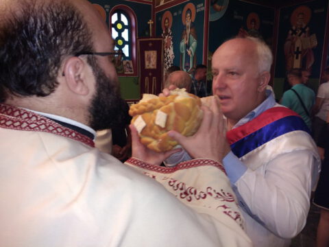 Надлежни парох је захвалио верноме народу који је својим доласком увеличао прославу храмовне славе, а потом је захвалио овогодишњим кумовима, господину Живку Михајлу и његовој породици, за показану љубав и на прилогу за свети храм. Кумство за следећу годину преузела je госпођа Радмила Тешановић са породицом.