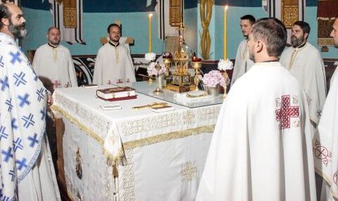 Свеноћно бденије и света Тајна јелеосвећења служени су у петак, 3. јула 2020. године, уочи празника Преподобне Анастасије Српске, у храму Сабора светих апостола у Апатину.