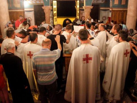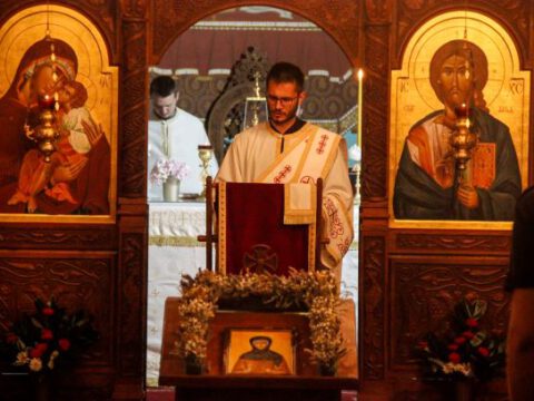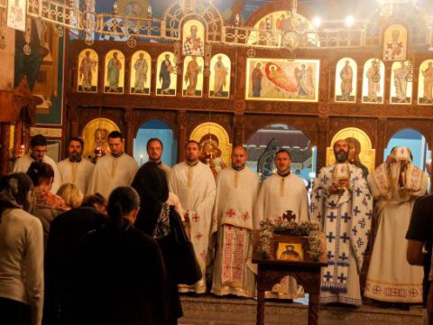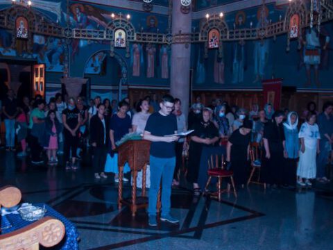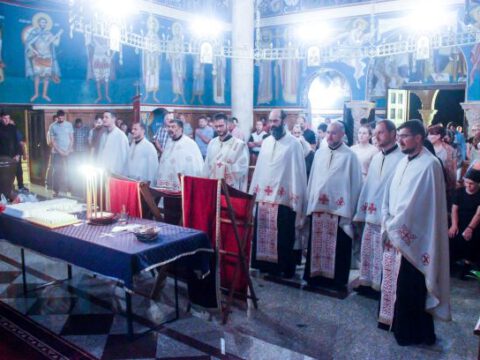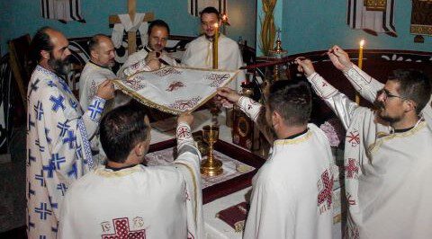 Свеноћно бденије и света Тајна јелеосвећења служени су у петак, 3. јула 2020. године, уочи празника Преподобне Анастасије Српске, у храму Сабора светих апостола у Апатину.