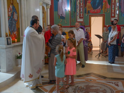 На крају Литургије освештани су славски дарови, које су припремили Момчило и Милка Палалић из Бачке Паланке.