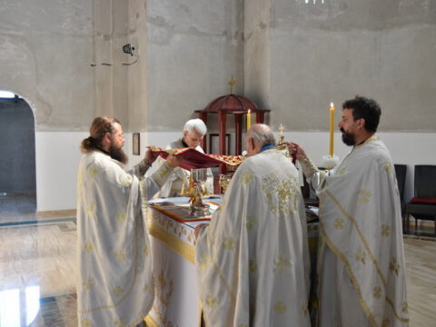 Сваки долазак на Свету Литургију прилика је да се подсетимо да је управо она, заједно са Светим причешћем, оно што чини Цркву. Овај свет је створен ради сједињења са Богом, а то остварујемо учешћем у Светим тајнама. Црква је кроз векове бивала гоњена, али су хришћани увек налазили начин да се причесте: у шумама, пустињама, тамницама… Зато, ми који исповедамо да смо хришћани у овом свету, који у злу лежи, треба да посведочимо хришћанску љубав према Богу и међу собом по узору на бројне Свете Божје људе које прослављамо, рекао је у литургијској проповеди свештеник Дејан Трипковић.