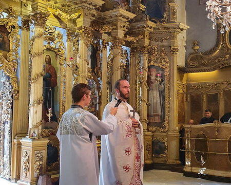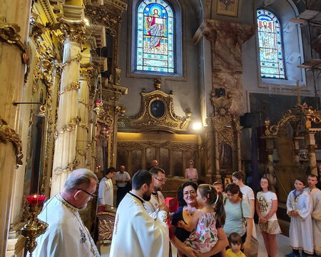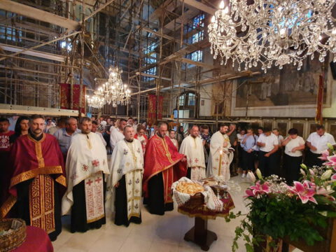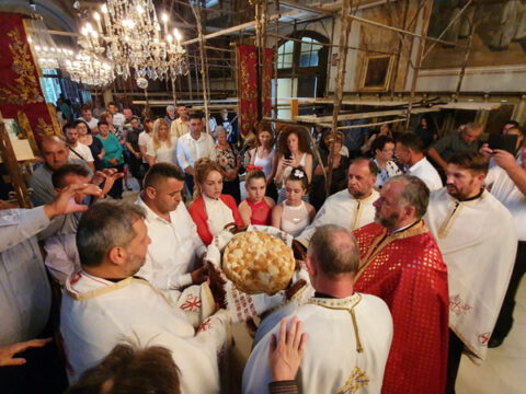 Прослава престоног празника храма Преноса моштију светог архиђакона Стефана је почела бденијем, 14. августа, на којем је началствовао протојереј-ставрофор Славко М. Пајовић, надлежни парох. Светом Литургијом на дан празника началствовао је протонамесник Горан Димић, парох при Саборном храму у Новом Саду, а саслуживали су протојереји-ставрофори Славко М. Пајовић и Милан Остојић, умировљени парох, јереј Данијел Кобиљски, парох лочко-виловски, јереј Живко Рајиновић, парох горњоковиљски, и ђакон Никола Дувњак из Бачке Паланке. Истог дана, служено је вечерње са обредом благосиљања славских дарова. Учествовали су, поред надлежног пароха, протојереј-ставрофор Стојан Билић, парох при Саборном храму у Новом Саду, протојереј Предраг Билић, парох из Ветерника, отац Милан Ђурић, парох из Жабља, отац Алексеј Блануша, парох из Равног села, и отац Петар Ђукић, парох из Ђурђева. Овогодишњи кум био је г. Милан Ђурђевић са породицом, а за идућу годину за кумство се јавио г. Родољуб Јошић са својом породицом из Госпођинаца.