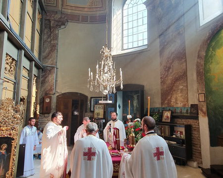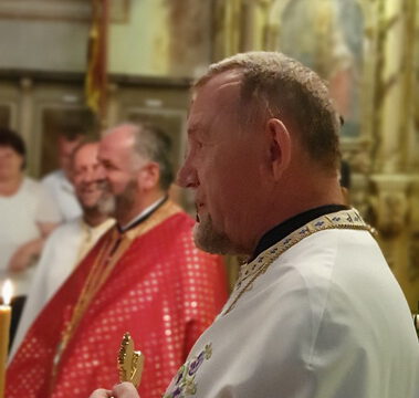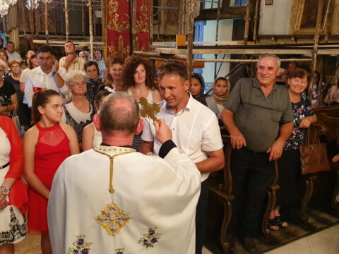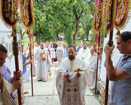 Прослава престоног празника храма Преноса моштију светог архиђакона Стефана је почела бденијем, 14. августа, на којем је началствовао протојереј-ставрофор Славко М. Пајовић, надлежни парох. Светом Литургијом на дан празника началствовао је протонамесник Горан Димић, парох при Саборном храму у Новом Саду, а саслуживали су протојереји-ставрофори Славко М. Пајовић и Милан Остојић, умировљени парох, јереј Данијел Кобиљски, парох лочко-виловски, јереј Живко Рајиновић, парох горњоковиљски, и ђакон Никола Дувњак из Бачке Паланке. Истог дана, служено је вечерње са обредом благосиљања славских дарова. Учествовали су, поред надлежног пароха, протојереј-ставрофор Стојан Билић, парох при Саборном храму у Новом Саду, протојереј Предраг Билић, парох из Ветерника, отац Милан Ђурић, парох из Жабља, отац Алексеј Блануша, парох из Равног села, и отац Петар Ђукић, парох из Ђурђева. Овогодишњи кум био је г. Милан Ђурђевић са породицом, а за идућу годину за кумство се јавио г. Родољуб Јошић са својом породицом из Госпођинаца.