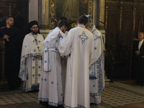 У току свете Литургије, Епископ бачки г. Иринеј је рукоположио ђакона Миладина Божиловића у чин презвитера, а Епископ мохачки г. Исихије је рукоположио катихету Милована Крстића у чин ђакона.