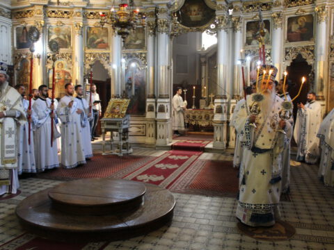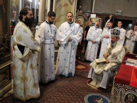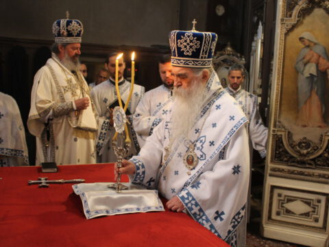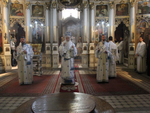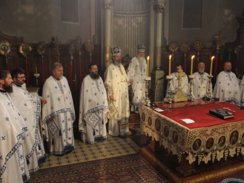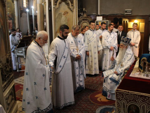 Његово Преосвештенство Епископ бачки др Иринеј началствовао је на светој архијерејској Литургији на празник Успења Пресвете Богородице, у петак, 15/28. августа 2020. године, у Саборном храму у Новом Саду, уз саслужење Епископа мохачког г. Исихија, архимандритâ Прокопија (Тајара) и Василија (Костића), свештенства и ђаконâ Епархије бачке.