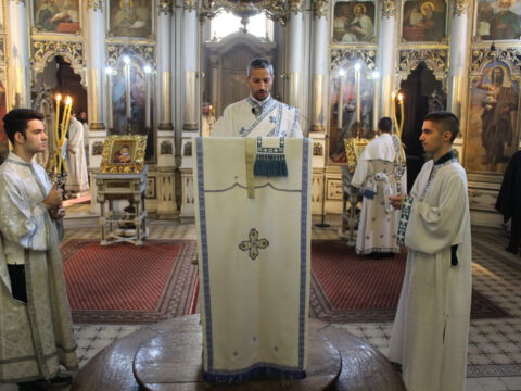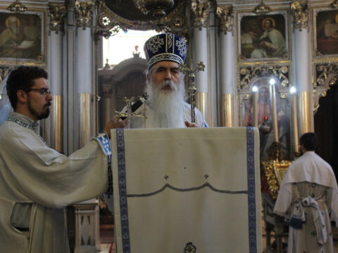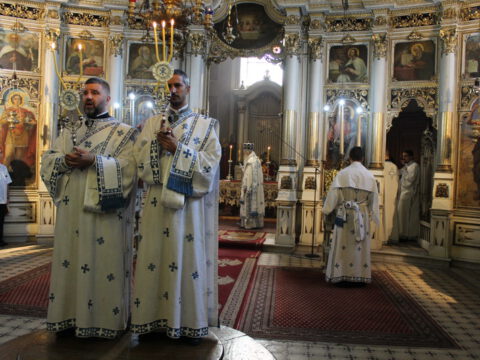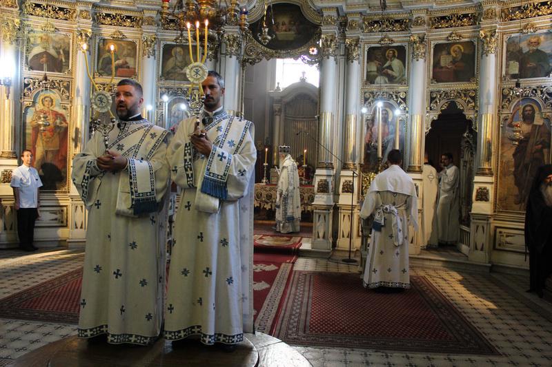 Његово Преосвештенство Епископ бачки др Иринеј началствовао је на светој архијерејској Литургији на празник Успења Пресвете Богородице, у петак, 15/28. августа 2020. године, у Саборном храму у Новом Саду, уз саслужење Епископа мохачког г. Исихија, архимандритâ Прокопија (Тајара) и Василија (Костића), свештенства и ђаконâ Епархије бачке.