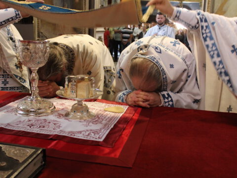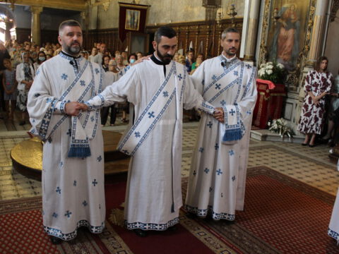 У току свете Литургије, Епископ бачки г. Иринеј је рукоположио ђакона Миладина Божиловића у чин презвитера, а Епископ мохачки г. Исихије је рукоположио катихету Милована Крстића у чин ђакона.
