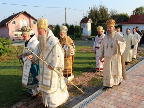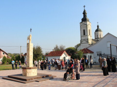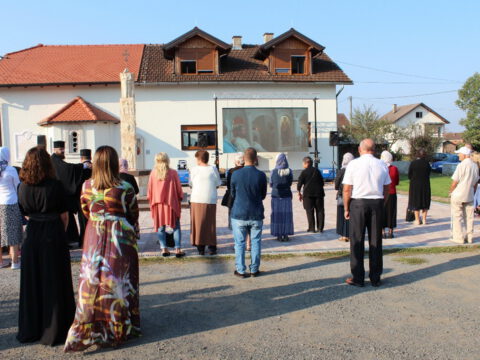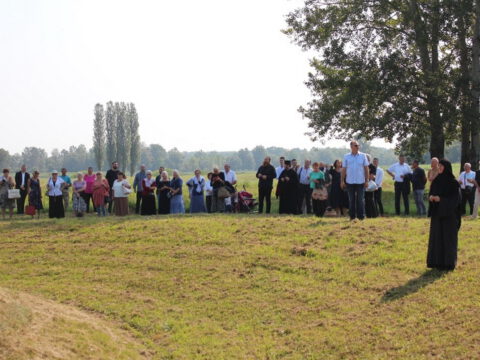 Послије отпуста Литургије, вјерници су се окупили на Јасеновачком спомен-подручју, гдје је Епископ Андреј, на једној од хумки, савршио чин благосиљања славског жита и колача. Владика Андреј се обратио окупљенима назвавши јасеновачко стратиште својеврсном апокалипсом. Рекао је да је народ који је страдао у Јасеновцу страдао голорук и био у немогућности да се брани. Владика је додао да ти људи нису ишли у смрт, јер су носили некакво зло. Напротив, носили су у себи вјеру и завјет својих породица и својих предака. Упоредио је незлобивост јасеновачких жртава са незлобивошћу старозавјетних патријараха и праотаца: Авраама, Исаака, Јакова и Јосифа.