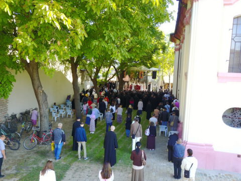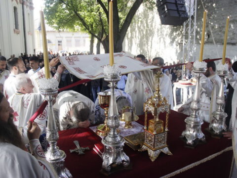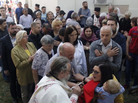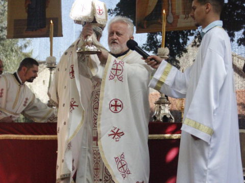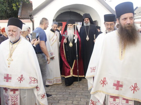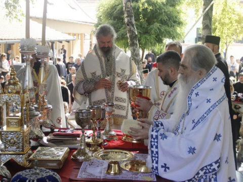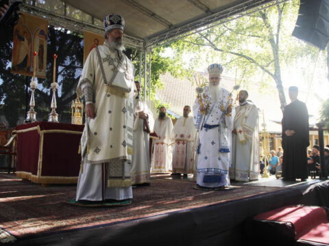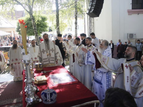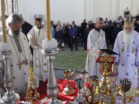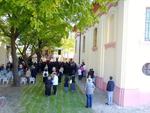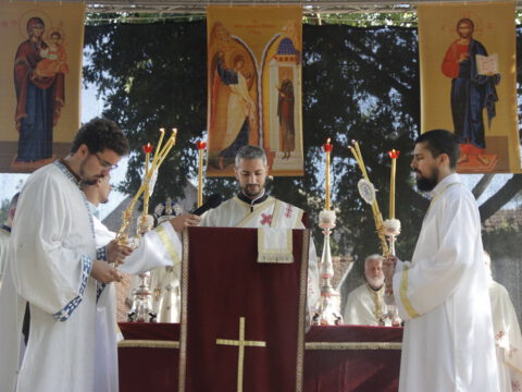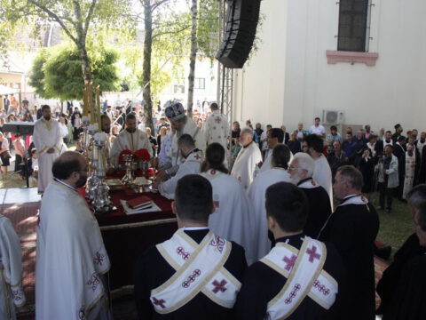 Свету архијерејску Литургију у порти храма Рођења светога Јована Претече служио је Његово Преосвештенство Епископ бачки г. Иринеј, а саслуживали су Његово Проесвештенство Епископ мохачки г. Исихије, свештенство и монаштво Бачке епархије.