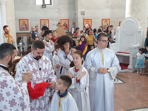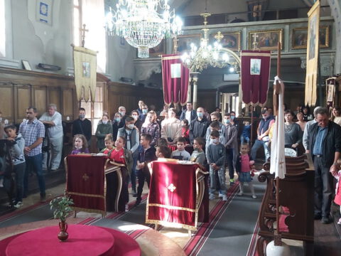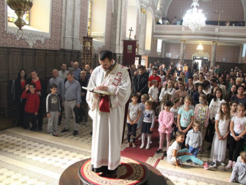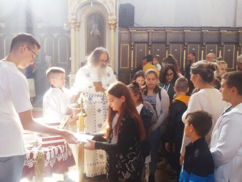 Сента – У дану када наша света Црква молитвено прославља Светога мученика Созонта, свете апостоле Евода и Онисифора, светог мученика Евпсихија, светог Јована, архиепископа Новгородског, и када се молитвено сећамо преподобномученика Макарија Каневског, преподобне монахиње Касијане и преподобног оца Луке, 7/20. септембра 2020. године, верни су се сабрали у храму Светог архангела Михаила у Сенти како би благоизволели призвати благодат Светога Духа на ученике, просветне раднике и сав благочестиви народ, за успешан и Богом благословен почетак школске године. Свету Литургију служио је презвитер Далибор Зарић, парох сенћански, а са децом је био г. Срђан Грубор, вероучитељ и катихета у сенћанским основним и средњим школама. После Литургије и коленопреклоног Молепствија или Призива Светога Духа, свештеник је одржао пригодну беседу, поздрављајући како оне који су сабрани – децу, њихове родитеље, наставнике и сав народ, тако и оне који нису присутни у храму, а које је благодаг Божја молитвама посетила и у њиховим домовима. Верници су потом целивали Часни крст, били покропљени освећеном водом и примили су дарове у виду иконица и слаткиша.