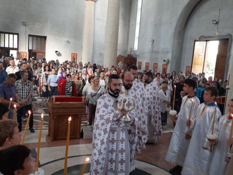 Саборни храм у Новом Саду – Његово Преосвештенство Епископ новосадски и бачки г. Иринеј молитвено је присуствовао светој Литургији у Светогеоргијевском храму у Новом Саду, у недељу 15. по Педесетници, 7/20. септембра. Литургију је служио протојереј Бране Миловац, уредник Информативне службе Епархије бачке, а саслуживали су свештеници Саборног храма и новосадски ђакони.