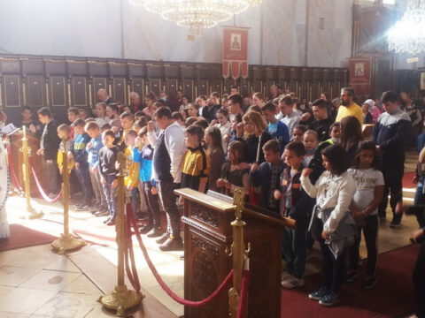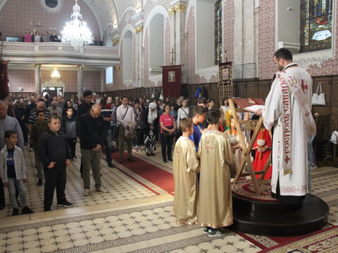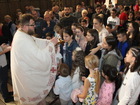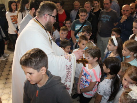 Уз присуство ученикâ, вероучитељâ, родитељâ и благочестивог народа Божјег, после прочитане молитве присутни су пришли на благослов и целивање Часног Крста.