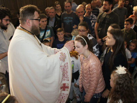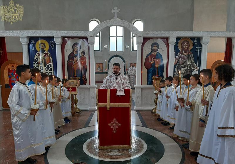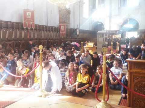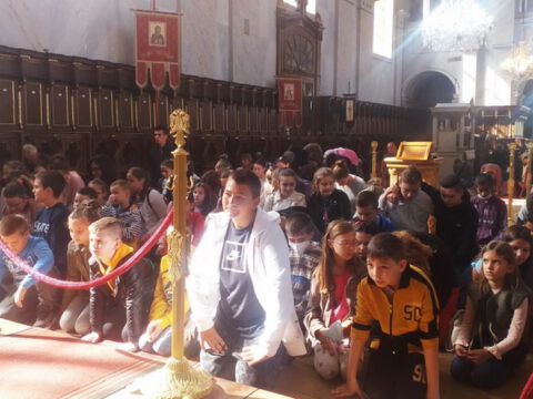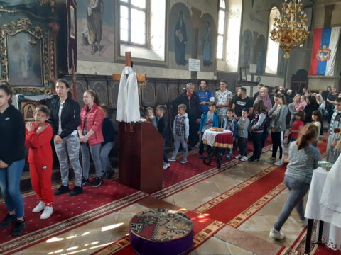 Уз присуство ученикâ, вероучитељâ, родитељâ и благочестивог народа Божјег, после прочитане молитве присутни су пришли на благослов и целивање Часног Крста.