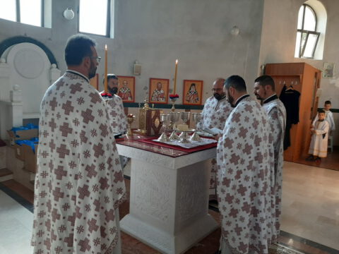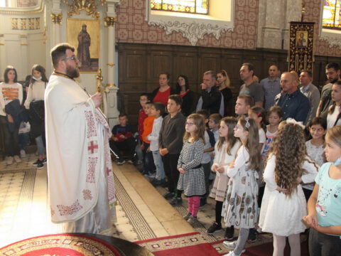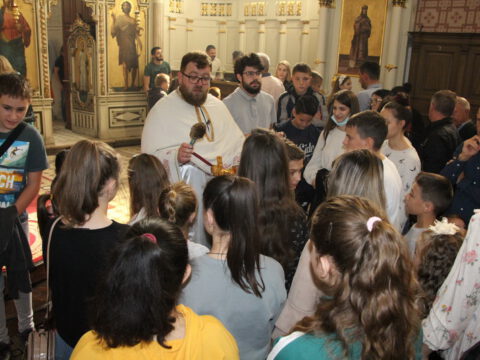 Ново насеље – У недељу петнаесту по Педесетници, 7./20. септембра 2020. године, у Светосавском храму у Новом Саду, у склопу Литургије служен је Молебан поводом почетка нове школске године. Свету Литургију служио је презвитер Миладин Божиловић, уз саслужење братства Светосавског храма. На крају свете Литургије, протојереј Бранислав Мркић, настојатељ храма, поздравио је присутне, са жељом да деца у здрављу душе и тела, уз Божју помоћ, усвоје корисна знања да би била на радост својим родитељима, а Цркви и отаџбини на корист. При дељењу антидора, верни су кропљени освећеном водом, а сваком детету уручен је пригодан поклон.