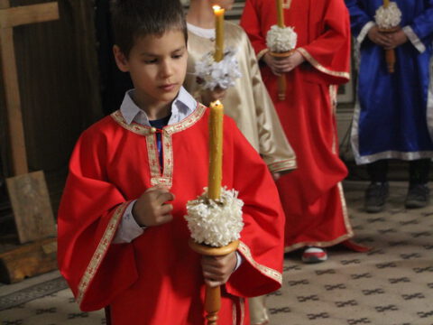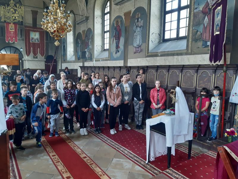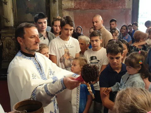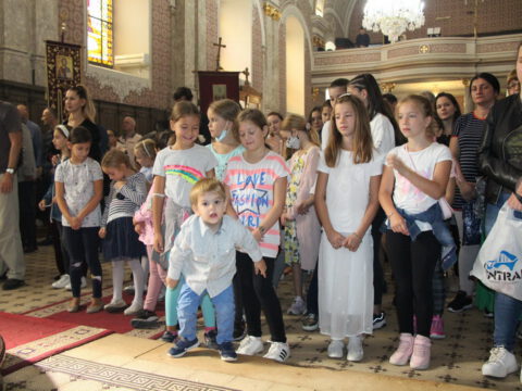 Сента – У дану када наша света Црква молитвено прославља Светога мученика Созонта, свете апостоле Евода и Онисифора, светог мученика Евпсихија, светог Јована, архиепископа Новгородског, и када се молитвено сећамо преподобномученика Макарија Каневског, преподобне монахиње Касијане и преподобног оца Луке, 7/20. септембра 2020. године, верни су се сабрали у храму Светог архангела Михаила у Сенти како би благоизволели призвати благодат Светога Духа на ученике, просветне раднике и сав благочестиви народ, за успешан и Богом благословен почетак школске године. Свету Литургију служио је презвитер Далибор Зарић, парох сенћански, а са децом је био г. Срђан Грубор, вероучитељ и катихета у сенћанским основним и средњим школама. После Литургије и коленопреклоног Молепствија или Призива Светога Духа, свештеник је одржао пригодну беседу, поздрављајући како оне који су сабрани – децу, њихове родитеље, наставнике и сав народ, тако и оне који нису присутни у храму, а које је благодаг Божја молитвама посетила и у њиховим домовима. Верници су потом целивали Часни крст, били покропљени освећеном водом и примили су дарове у виду иконица и слаткиша.